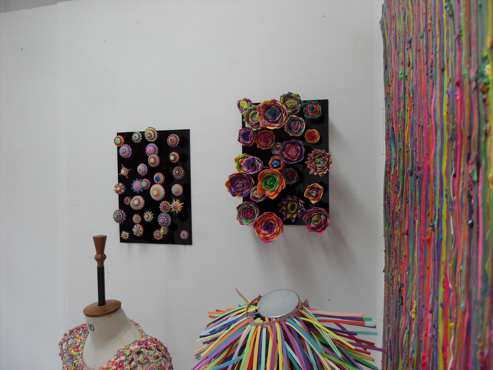 The last part of the show I visited was the Textile Design. I was really impressed by the standard of work and how professionally it was displayed. You could easily see some of the pattern designs being used commercially. I didn't take a lot of pictures as most Textile and Pattern designers get a bit touchy about copyrighting their designs which is a bit of a grey area as none of the designs have actually been copyrighted. The few pieces I managed to get pictures of were made with cut up sheets of modelling foam that you can buy from any craft and art shop. They must have taken ages to make and they are not very practical but they looked brilliant.